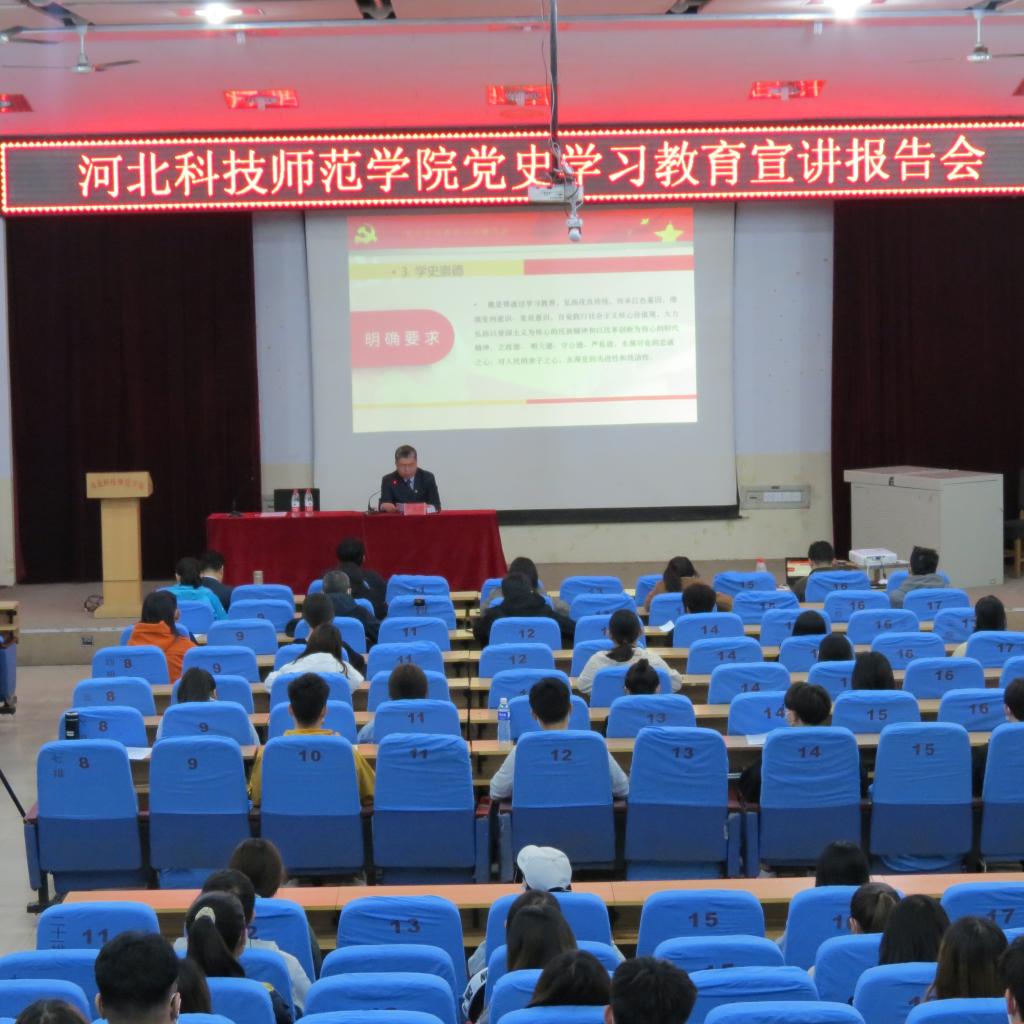 为深入开展党史学习教育,推动党史学习教育各项工作扎实落实,促进全院师生做到学史明智、学史增信、学史崇德、学史力行,4月22日下午,beat365平台官方网站邀请校党史学习教育领导小组副组长、党委副书记李佩国通知在昌黎校区学术报告厅为师生作党史学习教育宣讲。学院全体教师及学生代表210人参加报告会。报告会由beat365平台官方网站党委书记于明来主持。