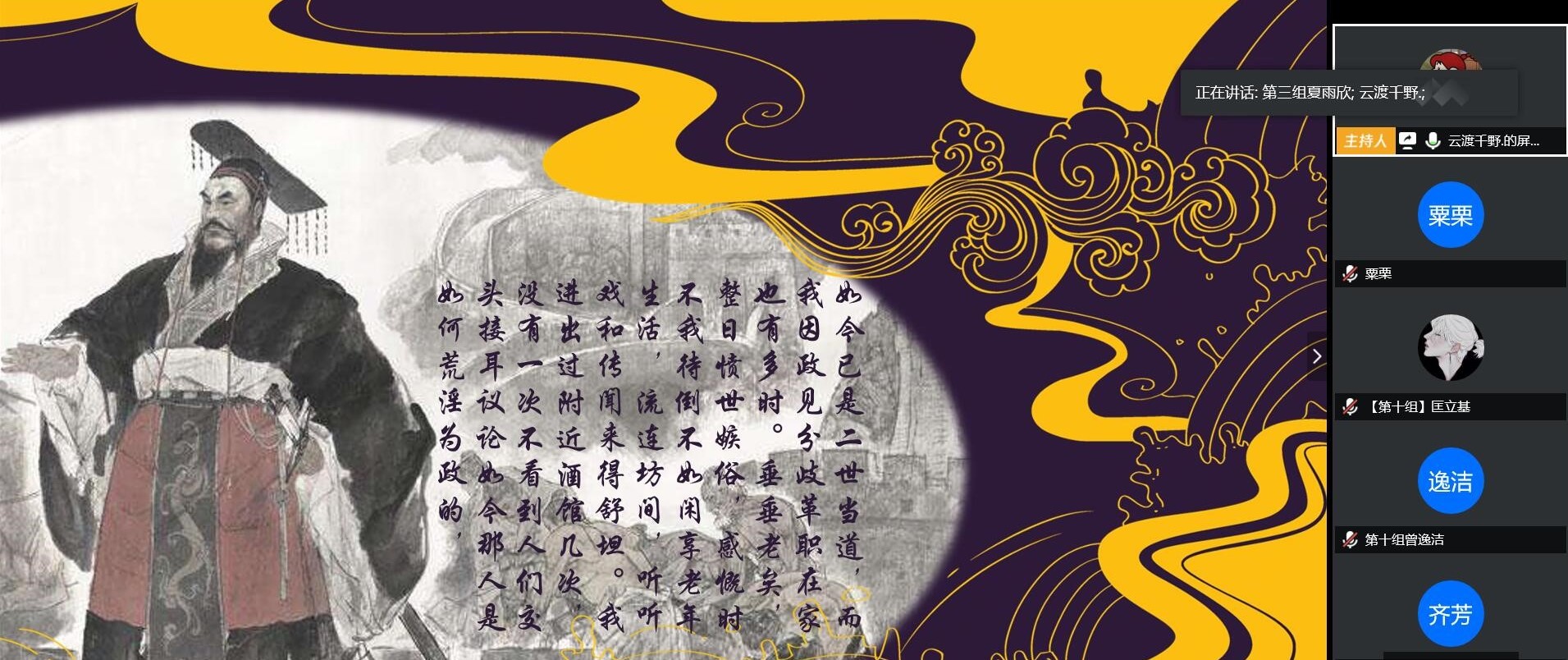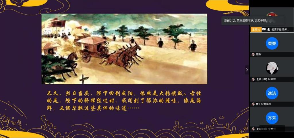 (通讯员 粟栗 王娜鹃)5月9日晚上,第37期楚源课程之“优秀历史纪录片赏析”特色活动——“穿越时空,与君共谈”在腾讯会议线上顺利展开。此次活动邀请了澳门永利集团网址APP“优秀历史纪录片”授课老师周游和辅导员陈卓君前来指导观摩。