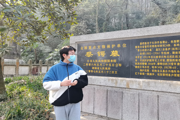 (通讯员 梁程炫 董小艳)为了更好地学习革命先辈的伟大精神,响应习近平总书记在纪念辛亥革命110周年大会上对新时代青年的呼吁,澳门永利集团网址APP青马中心小组于12月9日下午前往岳麓山的蔡锷墓和黄兴墓开展了主题为“忆往昔峥嵘岁月,承先辈革命精神”的实地学习交流活动。此次活动由副组长柴超担任主讲人,全体青马中心小组成员参加。