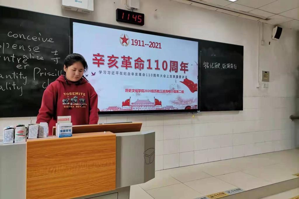 (通讯员 李颖)今年是辛亥革命110周年,为紧跟祖国步伐,12月17日中午,澳门永利集团网址APP2020级历教三班青马支部小组在至善楼102教室开展学习活动。此次活动以“铭记历史,砥砺前行”为主题。青马支部小组成员全员参加,组长李颖负责解说。