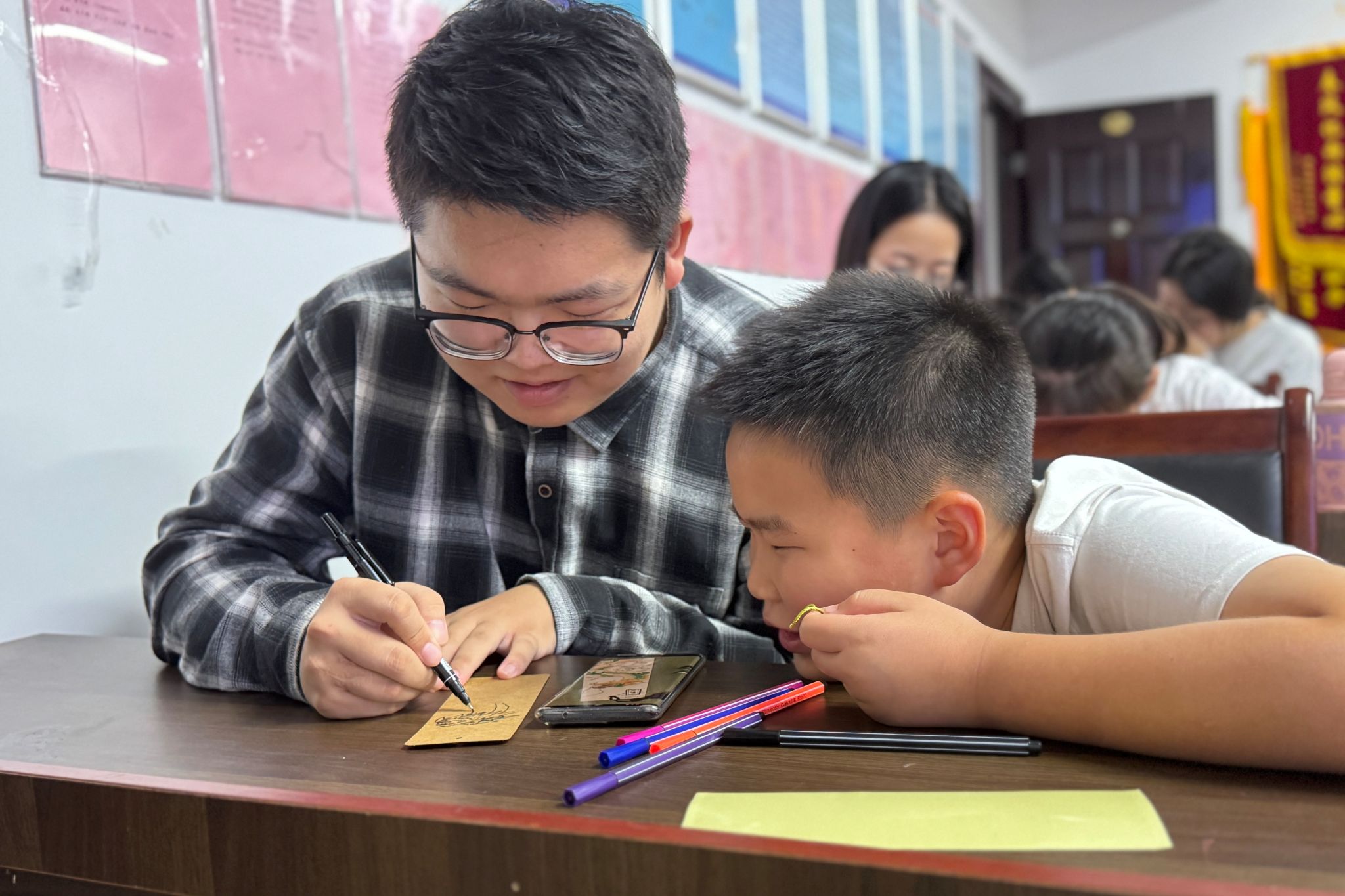 (通讯员 宋嘉怡 唐珂)10月20日下午,为激发阅读兴趣,提高师大社区儿童的动手能力,澳门永利集团网址APP区校共建部在师大社区党群服务中心开展“墨香签韵,童梦飞扬”志愿服务活动,澳门永利集团网址APP志愿者与社区小朋友们共同参与。