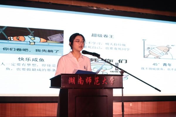 董韬然首先用“但行好事,莫问前程”、“功不唐捐,玉汝于成”概括了自己的学习、工作与实践经历,鼓励同学们做好学习规划与课外积累。许瞻通过对“学”和“教”说文解字来告诉同学们要在时间和空间里学,大处着眼,细处着手,同时给予了大家教学方面的建议,叮嘱同学们切忌好为人师。马文静侧重于向大家介绍“文博使者志愿服务项目”的调研与实践,鼓励同学们在大学期间以饱满的热情多多参与实践活动,提升综合素质和志愿服务能力。李玥颖介绍了自己参加创新创业大赛的经历,阐述了做好学生工作计划的重要性,同时提醒同学们劳逸结合、注意健康与安全。姚丁方针对大学生活中“躺平”、“内卷”、“既不躺平也不内卷”的三种状态为同学们提供了三份有意义的学习生活指南,建议同学们在大学里培养起自己的兴趣爱好、学会平衡时间。