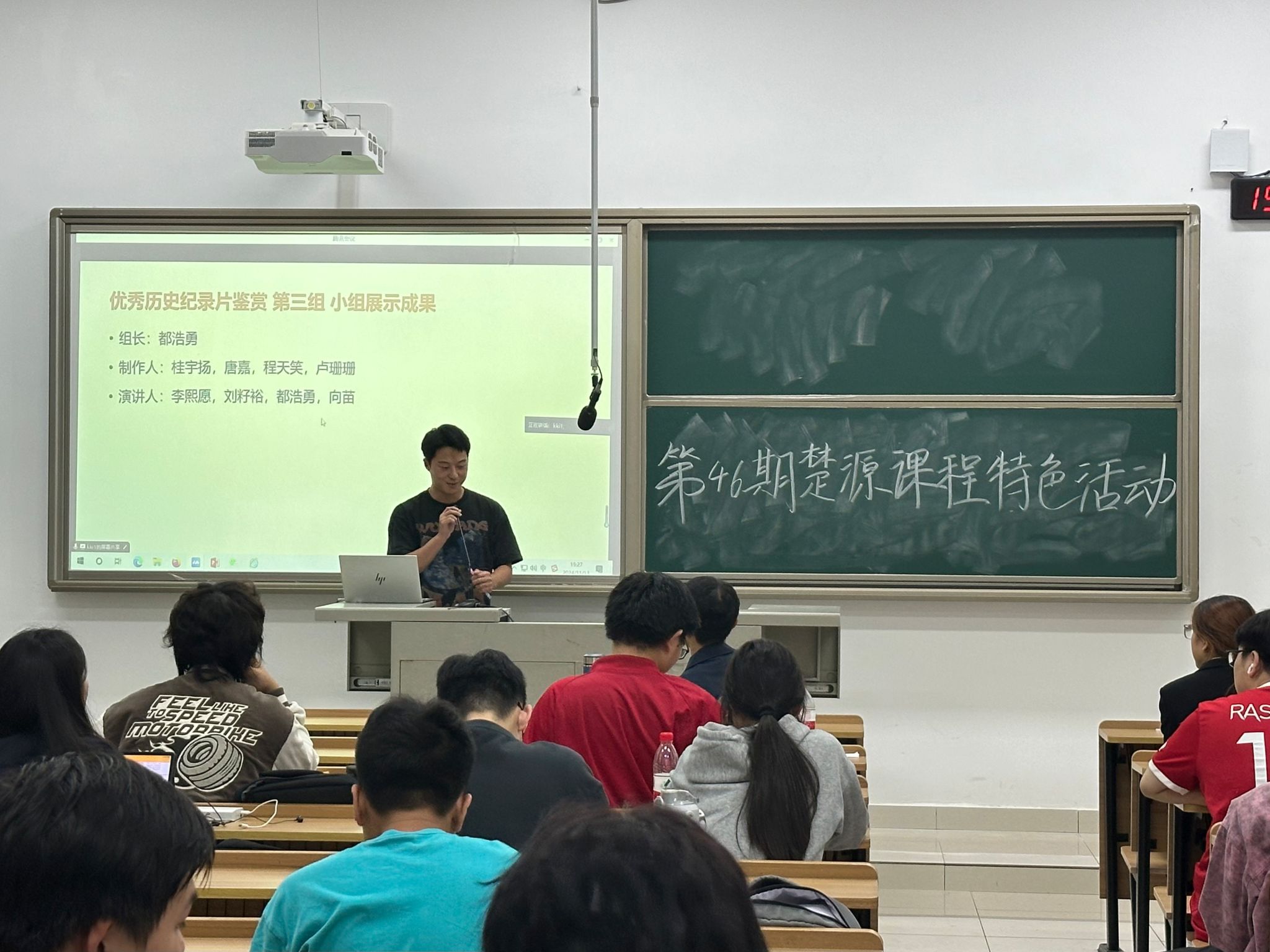 (通讯员龚思琪彭元沅)11月13日晚,澳门永利集团网址APP团委社会实践部于文渊楼407教室开展以“聚焦美好生活,探索镜界之美”为主题的楚源课程《优秀历史纪录片》特色活动。授课老师李明楠、院团委书记陈卓君参加此次活动。