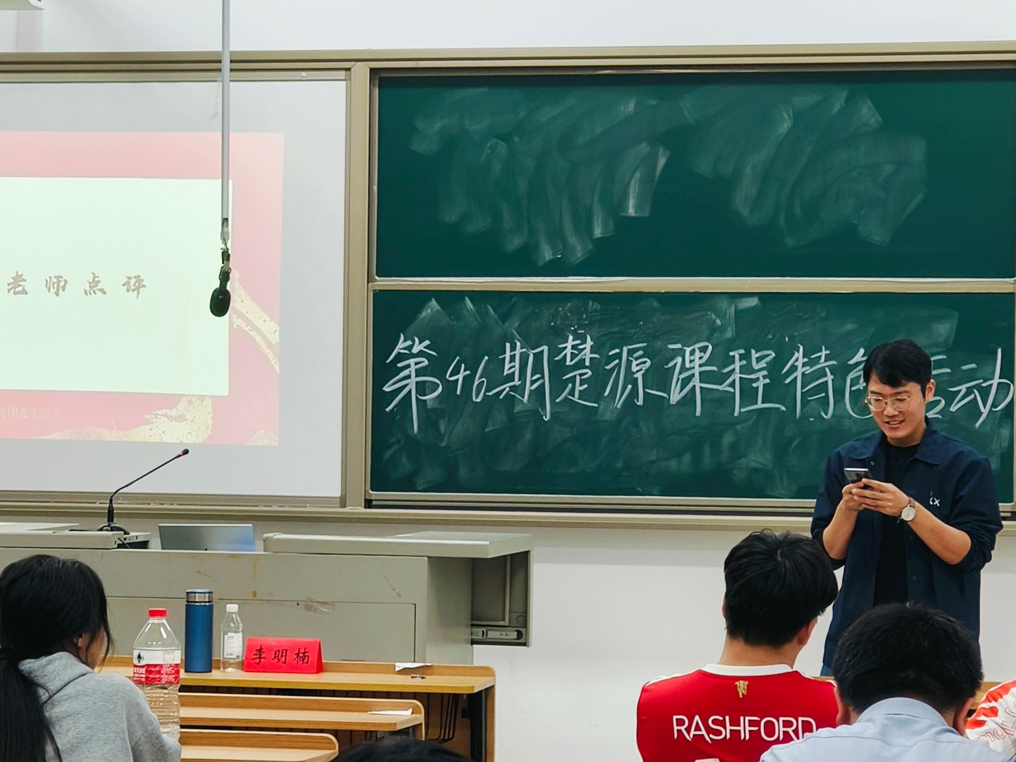 活动伊始,主持人带领大家回顾本学期观看过的纪录片,总结两次户外实践经历的活动成果。随后,学员们以小组为单位依次上台进行展示家乡特色,有“魅力水乡”之称的安乡以及“南方昌盛”之意的南昌等。学员们丰富的展示内容,带大家了解了不同的城市,领略了多样的文化。活动的最后,授课老师李明楠作点评发言,他对各组的展示内容给予充分的肯定并希望同学们能从日常生活的细节里发现历史的独特魅力。