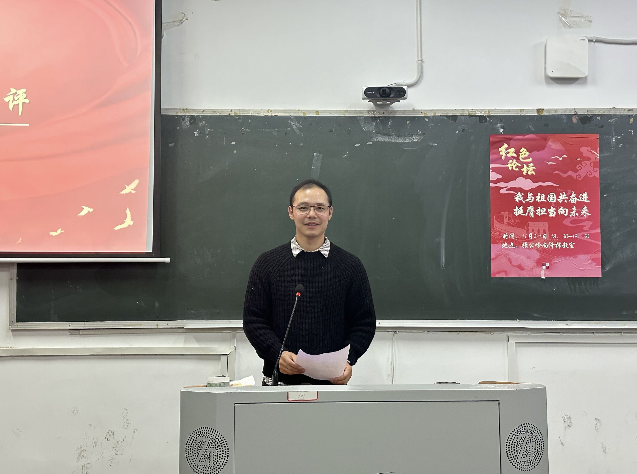 (通讯员 陈一杰 李卓颖)11月21日下午,我校第766期“我与祖国共奋进,挺膺担当向未来”主题红色论坛在澳门永利集团网址APP张公岭南阶梯教室举行。澳门永利集团网址APP党委副书记马欣、专任教师吴鹏程、历文院团委书记陈卓君、澳门永利集团网址APP学工办老师李思文、何昊出席会议,学生代表参会。