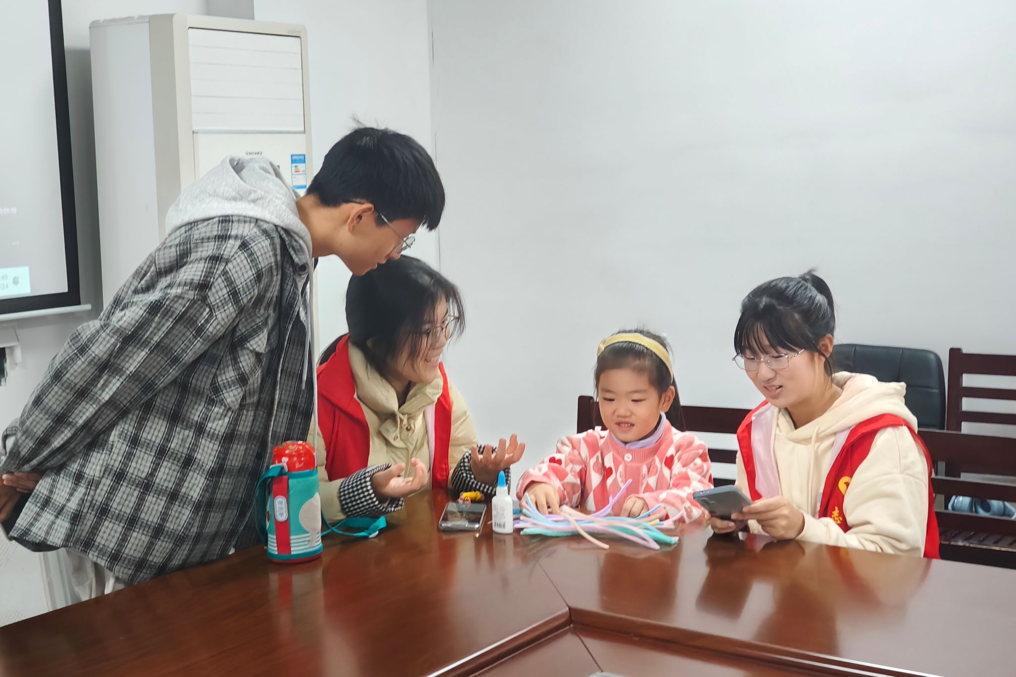 (通讯员 李佳琪 唐珂)11月24日下午,澳门永利集团网址APP团委区校共建部在麓枫社区党群服务中心开展“绒花映节,童趣盎然”志愿服务活动。此次活动共有14名大学生志愿者以及7名社区小朋友参加。