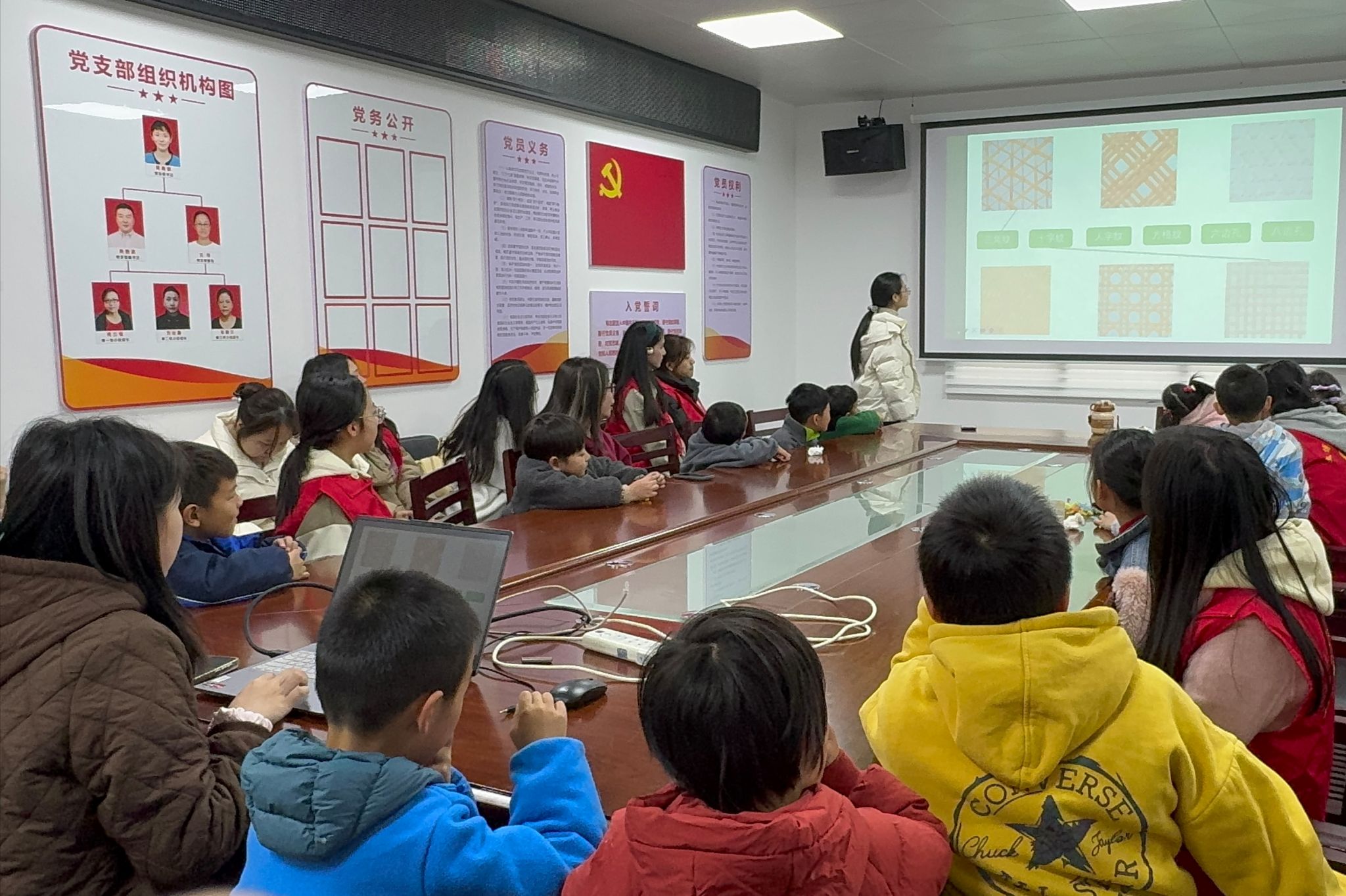 主讲人以竹编匠人的视频为课堂的导入,向小朋友们阐释竹编技艺的概念,后借助图片向大家讲解竹编的历史传承与制作过程。通过竹编技法连线题以及志愿者演绎“有眼不识泰山”的故事,主讲人向大家深入展现了竹编的文化内涵和社会意义,增强了小朋友对传统技艺的理解与自豪感。在志愿者的辅助下,小朋友们动手实践,制作出多样的竹编制品并上台分享自己的创造理念。活动结束后,志愿者们打扫场地卫生并合影留念。