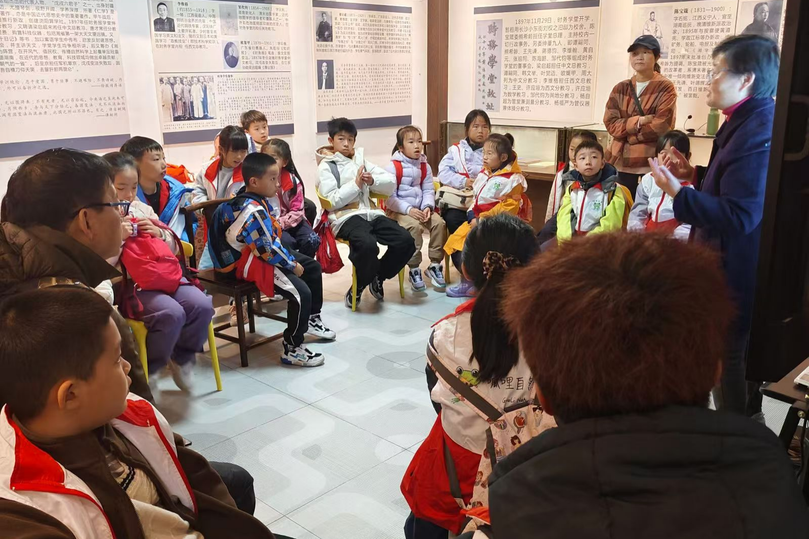 活动伊始,天倪庐工作人员为志愿者们进行了故址介绍与解说培训,深化了志愿者们对时务学堂的认识。经过培训后,工作人员带领志愿者到达指定位置,为游客们进行展览解说。活动过程中,游客们跟随志愿者以及工作人员的脚步,在观光游览中,通过志愿者的语言,领略浓厚独特的历史韵味。