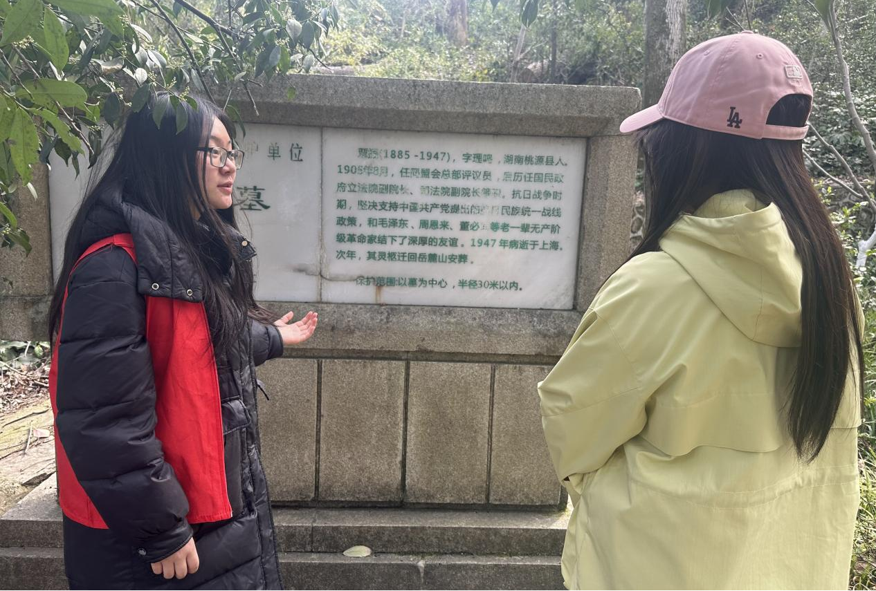 活动伊始,志愿者们自行分为两组,一组前往不同陵墓区,针对各烈士的生平事迹和革命精神,为游客提供讲解服务,传播红色文化。另一组则停留在各路线段为游客提供指路服务,帮助他们便捷迅速地找到烈士墓的位置。最后,志愿者们对烈士墓附近遗留的矿泉水瓶等垃圾进行了清扫,通过实际行动向游客们传播环保理念。