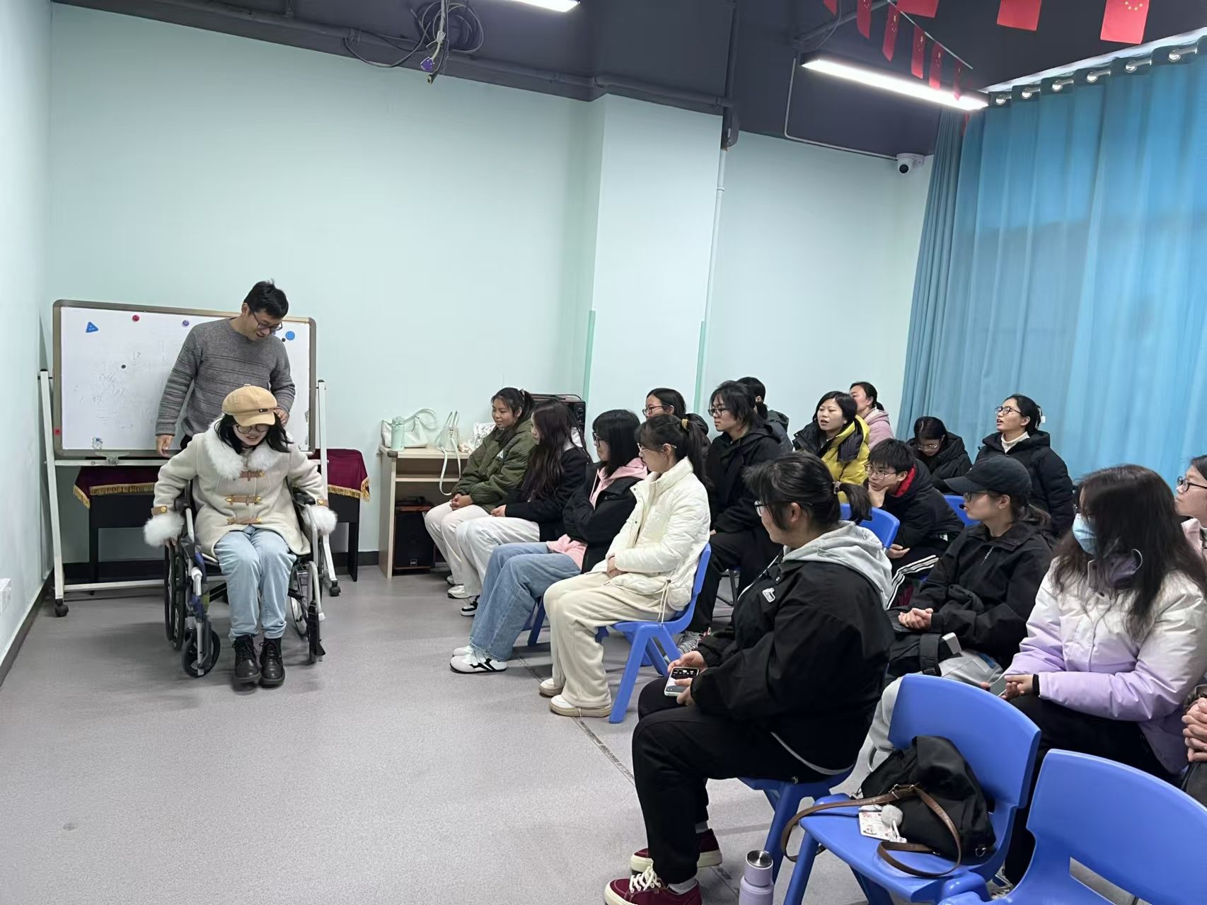 活动伊始,在工作人员的指导下,志愿者有序签到并开展准备工作。在活动过程中,志愿者认真记录工作人员的科普讲解,包含心智障碍儿童特点、家庭需求与社会支持等一系列要点。在互动交流环节中,志愿者带领大家通过感官模拟、角色扮演等方式体验残障人士的日常生活,并深入探讨如何为这一群体提供更有效的帮助。活动全程强调尊重与耐心,志愿者高效配合,积极记录服务心得,并拍摄活动影像资料。活动结束后,志愿者共同参加机构负责人召开的自由交流与总结会议,并依次分享实践经验。