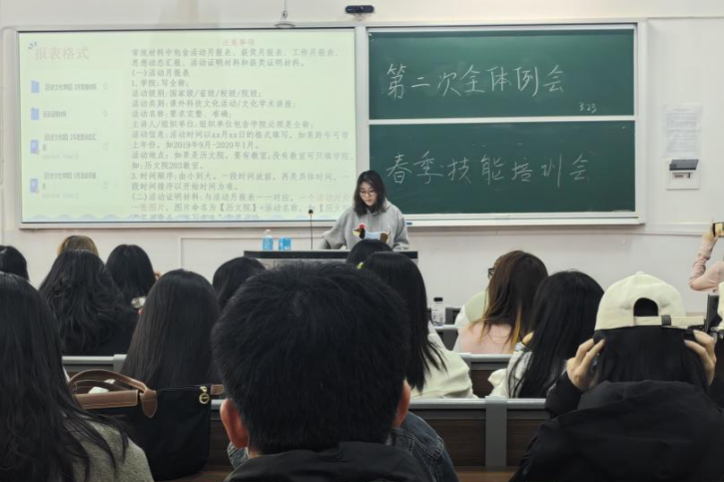 (通讯员 张嘉怡 孙晓堞)3月23日上午,为提高学生会成员文书写作与宣传摄影技能,澳门永利集团网址APP学生会于学院307教室开展学生会春季技能培训会。此次会议由办宣部第一负责人万金枝与办宣部第二负责人孙晓堞主持,学生会全体成员参加。
