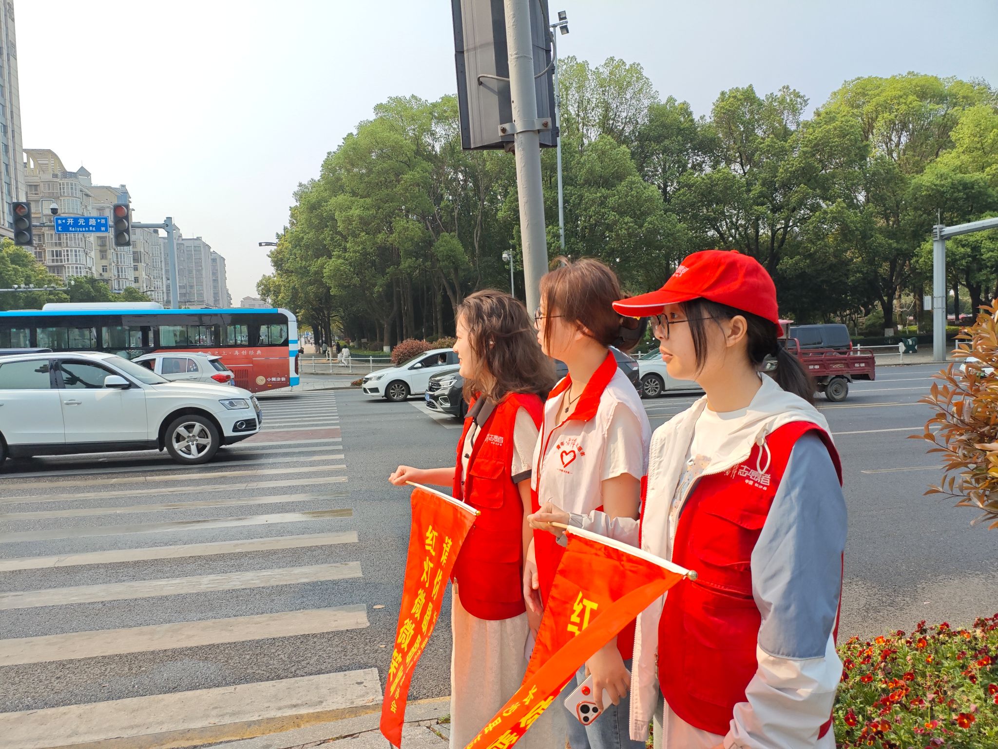 活动伊始,在辖区交警的专业指导下,志愿者们系统学习了交通指挥手势、劝导技巧及安全注意事项。随后,志愿者们身着统一的红色马甲,分组投入到协助指挥交通、倡导文明出行的工作中。在活动过程中,志愿者们以规范的动作、亲切的态度引导行人遵守交通信号灯,劝阻闯红灯、穿马路等不文明行为,有效提升了路口的通行效率。此外,志愿者们向市民发放交通安全宣传资料,普及交通安全知识,为交通管理工作注入新活力。