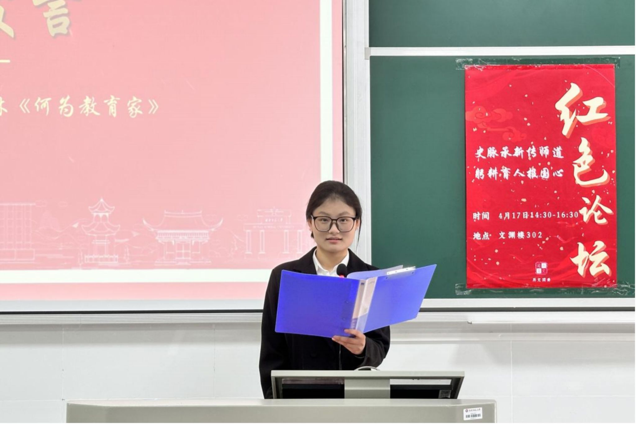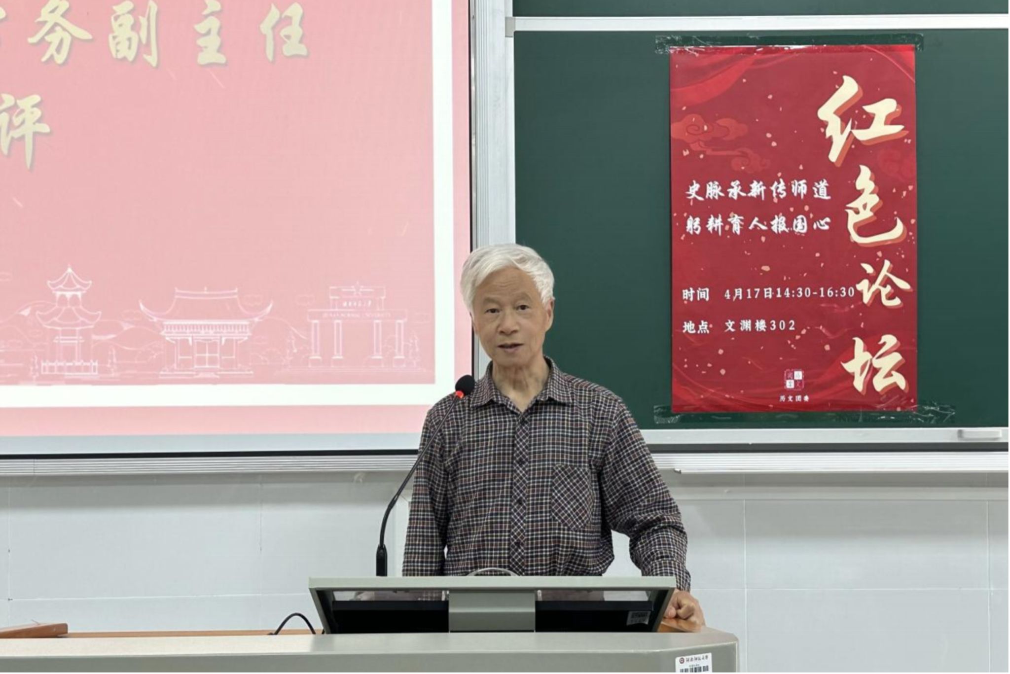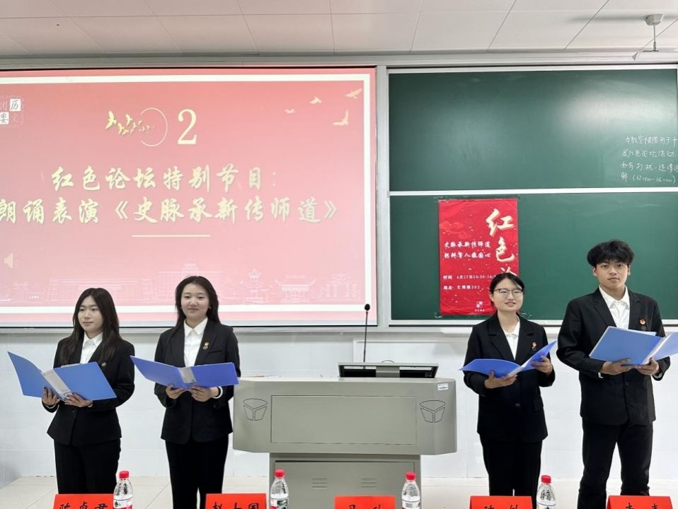 (通讯员 陈淙溪 李卓颖)4月17日下午,第797期“史脉承新传师道,躬耕育人报国心”主题红色论坛在澳门永利集团网址APP文渊楼302教室举行。澳门永利集团网址APP党委副书记马欣、关工委常务副主任赵士国、学工办主任陈敏、团委书记陈卓君、学工办老师李青、李思文、何昊出席会议,学生代表参会。