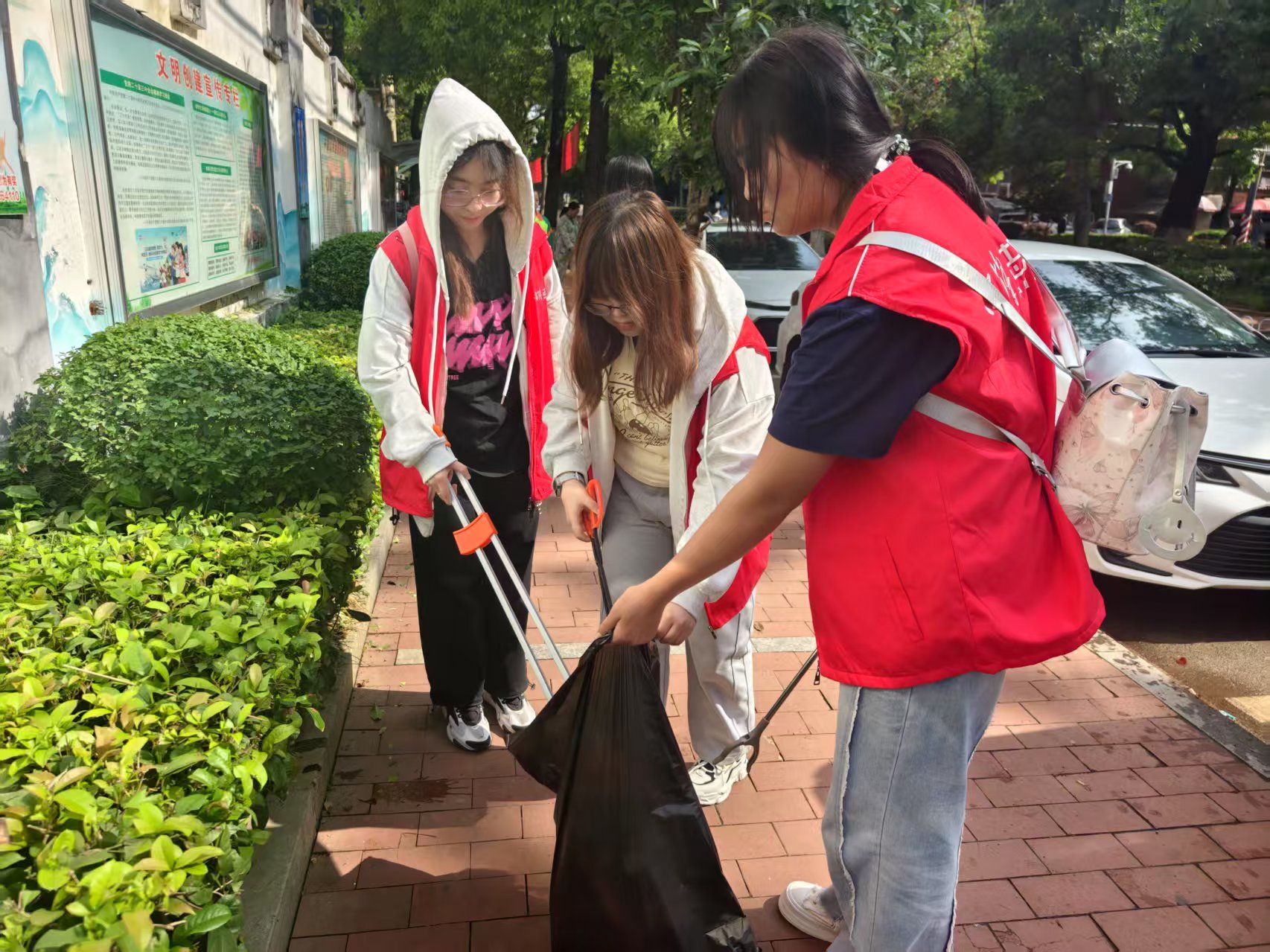 活动伊始,志愿者们分组明确各自工作任务并领取清扫工具。清扫过程中,志愿者们身穿红马甲,手拿抹布、垃圾钳等清洁工具深入辖区垃圾存放点位及村、社区角落,重点清理居民区、背街小巷等卫生角落的垃圾,深度清理电线杆、楼道口“牛皮癣”,分类归置公共区域物品,改善辖区居住环境。同时,志愿者们向居民群众进行宣传垃圾分类知识,以实际行动引导他们也积极参与到社区卫生整治工作当中。活动结束后,志愿者们将清洁工具归回原处,并合影留念。