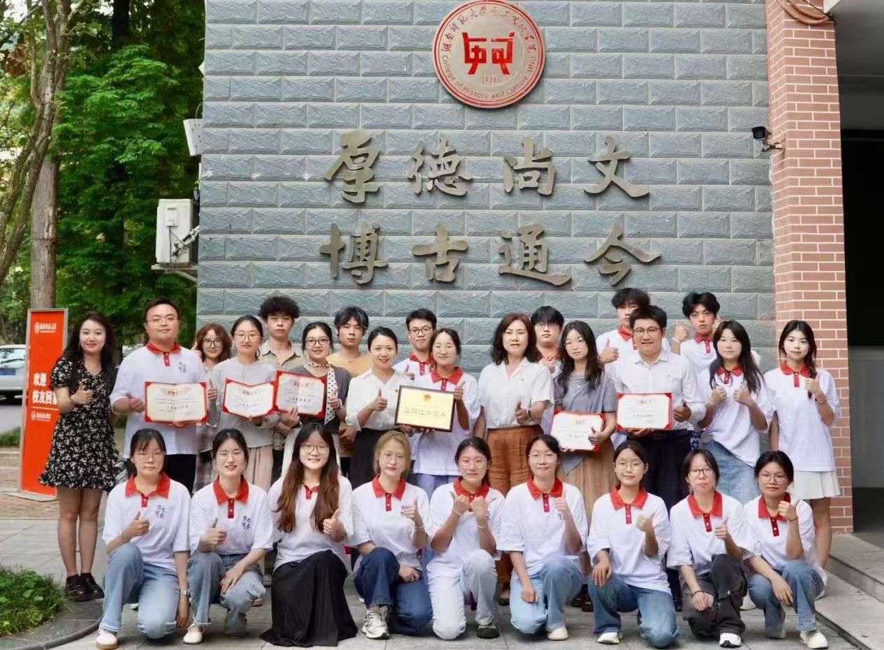 在此次表彰中,澳门永利集团网址APP团委荣获“五四红旗团委”称号,澳门永利集团官网团委书记陈卓君获评校“十佳共青团先进工作者”,2023级历史教育二班“生命护航・生态共行”主题团日活动荣获“十佳团日活动”,2022级历史学(师范)专业刘家玮、2022级文化产业管理专业李玥颖获评校“十佳共青团员”,2022级历史学(师范)专业姚丁方、2021级历史学(师范)专业李想分别获评“十佳科研标兵”“十佳文体之星”。