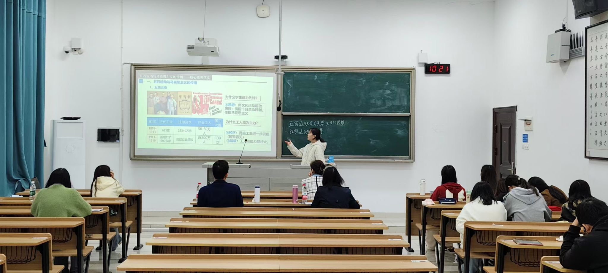 此次比赛采用“8分钟片段教学”形式,比赛成绩分为面试(50%)和笔试(50%)两部分,笔试成绩取“三字一话”、心理学、学校教育学三门课程平均分,面试评分标准涵盖教学设计(30分),多媒体课件制作(20分),片段教学(含板书,50分)三大部分。参赛学生共分为16组,每组由三位评委老师从教学内容设计、课件制作水平、教学语言表达、课堂互动效果等多个维度对学生比赛表现进行综合评判。赛程中,参赛学生需要围绕某特定历史主题展开教学,运用多媒体课件、板书设计等多种教学手段,在规定时间内完成知识点讲授,全面展示教学基本功与课堂驾驭能力。参赛选手全部展示结束后,各赛场评委结合具体表现,从教学逻辑、课堂掌控、教学创新等角度给予针对性反馈。