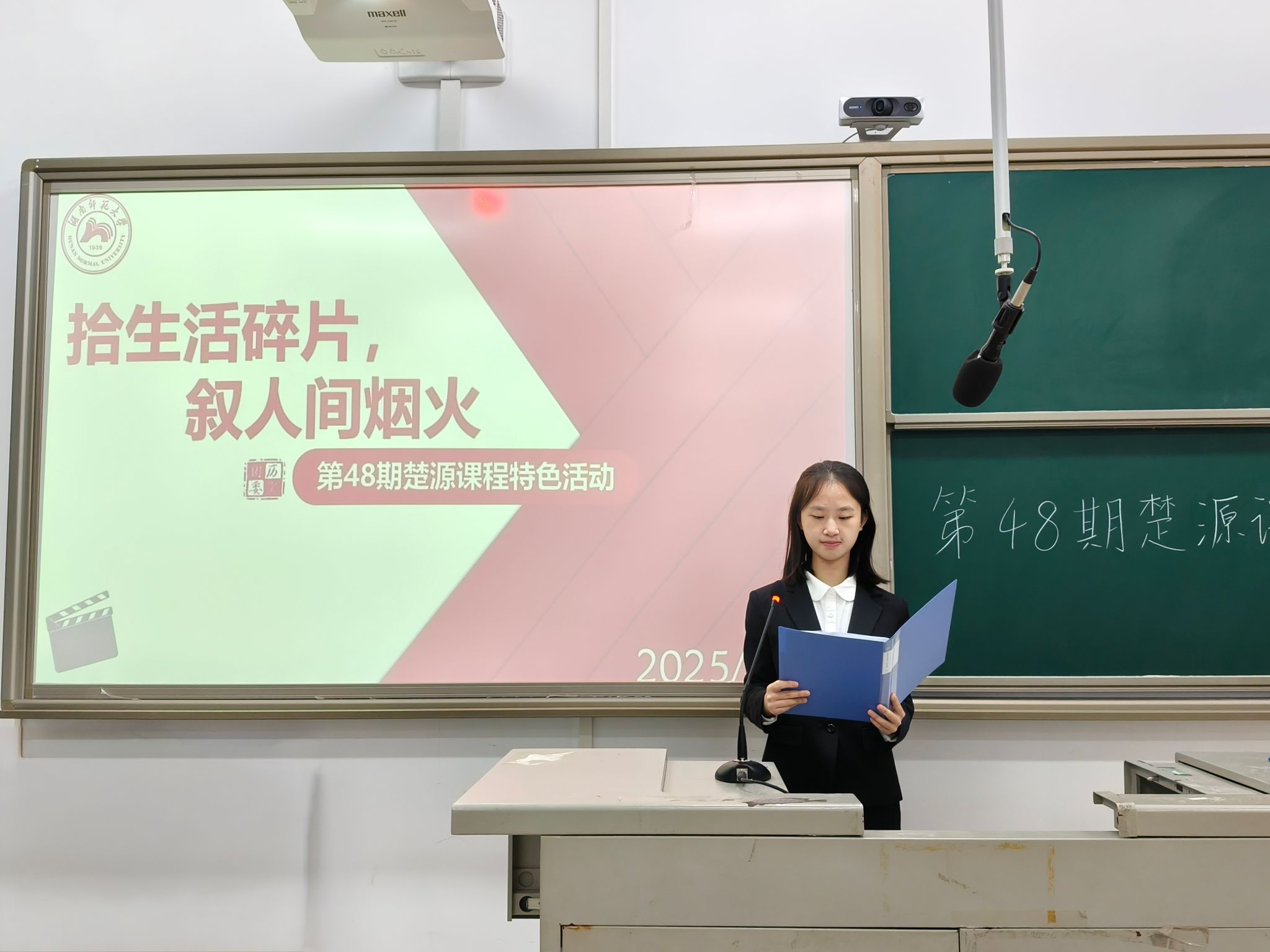活动伊始,主持人带领全体学员回顾了本学期观看的纪录片内容,并且总结了两次户外实践活动所取得的成果。在小组汇报环节,学员们借助视频vlog、PPT等形式进行展示。从记录生活日常到推介家乡风物,这些多样的展示内容有利于学员们了解不同的生活场景与各地的特色文化,切实感受生活的丰富面貌。