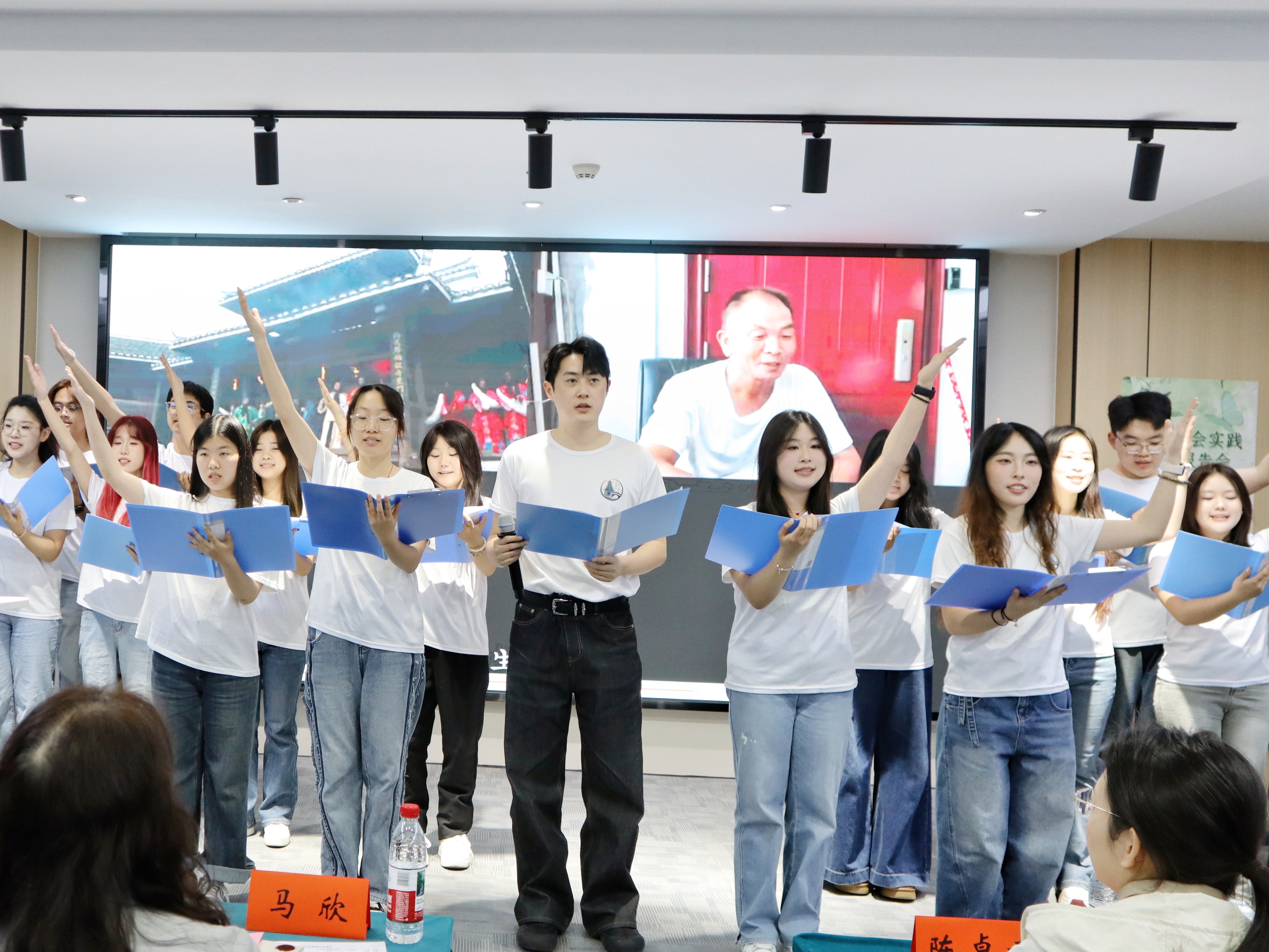 各支队伍展示完毕后,评委老师现场对八支队伍进行评分。马欣现场宣读此次评审结果,公布获奖名单并进行颁奖仪式,全体与会老师与获奖团队代表合影留念,此次暑期社会实践成果汇报会落下帷幕。
