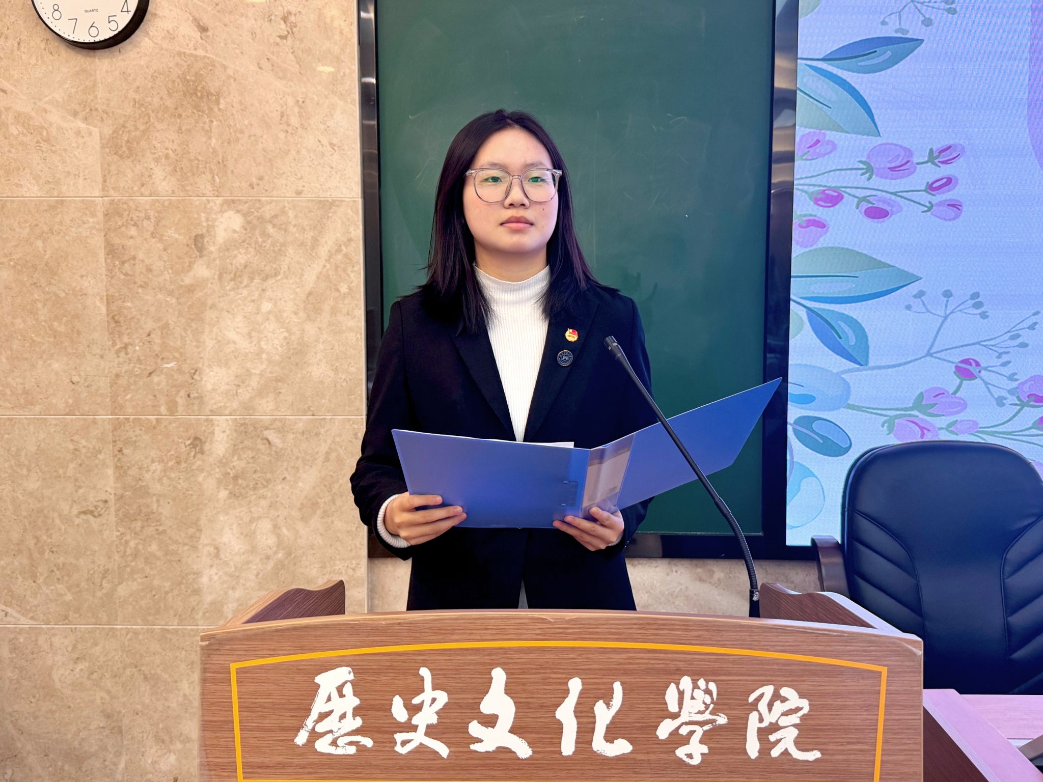 讲座上,主讲人以平实真挚的语言,围绕日常学习、筹备比赛、实践调研等多个维度的成长经历,讲述了自己如何在多重角色与挑战中实现突破与沉淀。主讲人提到,图书馆的安静时光让她学会安顿内心,而备战比赛与期末的双重压力则让她不断挖掘出自身的潜能。主讲人特别分享了自己深入田野开展文物调研与数字化工作的经历,她从中感受到“书本里的‘文化’原来是活的”,切身体会到专业实践与真实世界的紧密连接。在讲座尾声,主讲人鼓励同学们在忙碌中寻找节奏,在尝试中扎根成长,并相信每一个坚定前行的瞬间,都将汇聚成更好的自己。