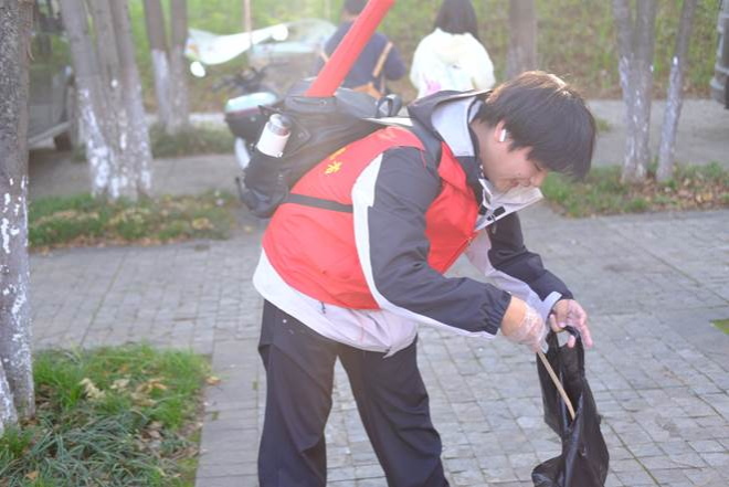活动伊始,志愿者们领取志愿服、手套以及垃圾袋等用品,前往各自负责区域。在环境清理环节,志愿者们分工明确,对公园的草坪、步道及湖岸线等区域进行清扫。经过一个小时的共同努力,公园附近垃圾基本被清理,公园环境得到改善。在急救知识培训环节,志愿者们认真观看急救视频、学习理论知识;并在老师的指导下进行了实操练习,基本掌握了初级救护的要领。在活动过程中,部分志愿者主动向往来的市民宣传环保理念,倡导大家共同维护城市公共环境。活动结束后,志愿者们归还工具并合影留念。
