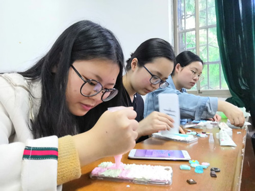 活动开始之前,理事清点材料、布置活动场地、发布活动预告说说。活动伊始,理事张银香引导会员进场并签到,随后项目组成员和部分理事分发活动材料。王佳欣首先通过PPT和相关视频,向会员介绍奶油胶并说明制作步骤。接下来,在理事们的指导下,会员就开始动手实践——利用奶油胶装点手机壳。活动结束后,理事清理剩余材料、打扫场地卫生。
