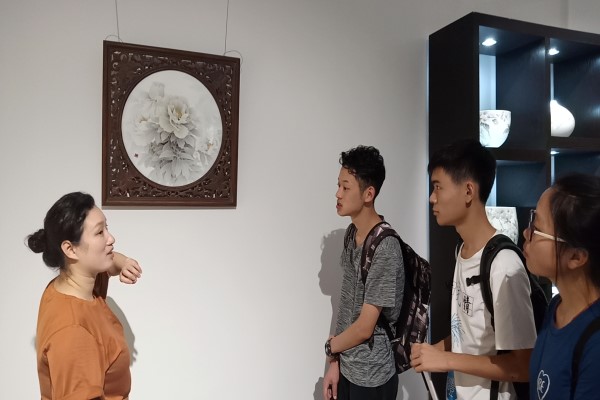 首先申彬向小组成员介绍了陈扬龙釉下五彩瓷艺术中心和陈扬龙的创作与教育理念,即“薄施淡染推陈出新,造物忌巧待人以诚”。此外,申彬还介绍了陈扬龙、陈利和她自己的代表性作品,并给我们讲解了作品蕴藏的含义和艺术技巧。随后,口述史组成员针对醴陵陶瓷的发展现状和存在的问题对陈利进行了采访,陈利对相关问题一一进行了解答。采访结束后,陈利带小组成员参观了陶瓷生产工作室,并与口述史组成员合影留念。