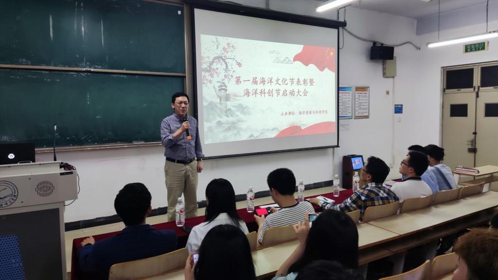 5月19日晚beat365平台官方网站在昌黎校区主教学楼C108举行了海洋文化节表彰暨海洋科创节开幕大会,beat365平台官方网站副院长王青林,学工办主任孙胜显,办公室主任刘升,教师代表,获奖学生代表出席此次大会。
