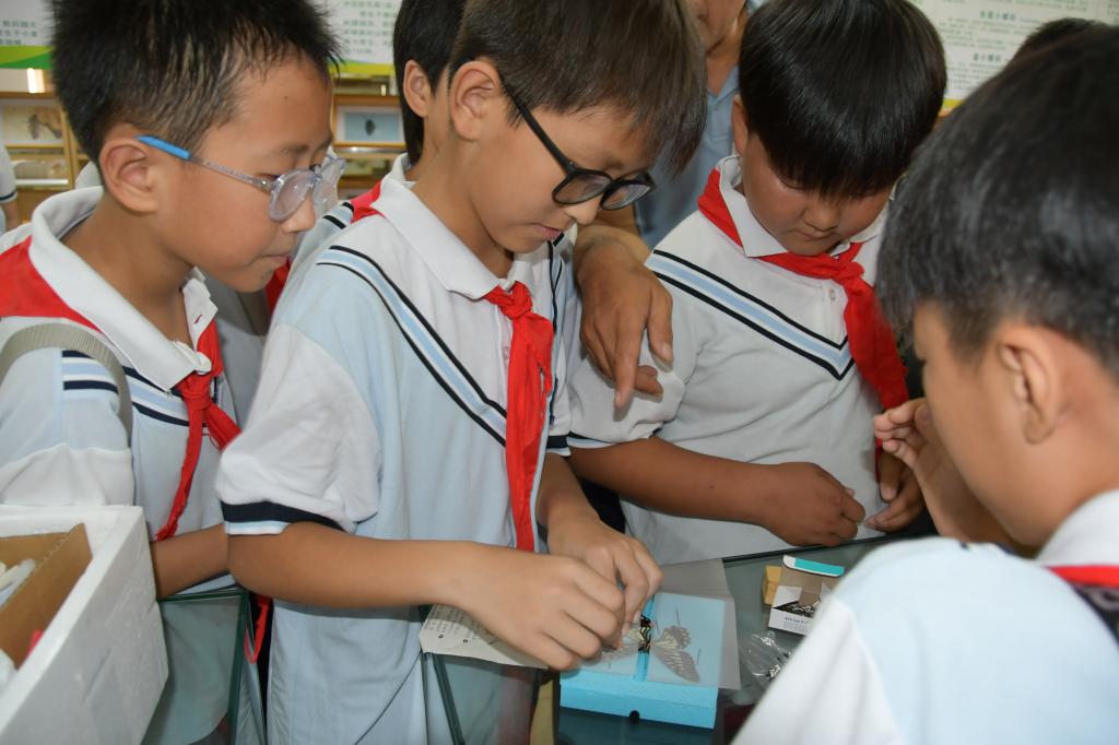 标本馆工作人员首先带领小学生们参观了秦皇岛昆虫图板科普展廊和冀东农林害虫天敌昆虫展厅。生动的昆虫科普图板和丰富多彩的昆虫标本引起了学生们极大的兴趣,他们纷纷顿足,积极交流,热情高涨,仿佛徜徉于广阔的大自然之中,学生们对生物防治、生态平衡和生物多样性保护等理念有了初步的认知。