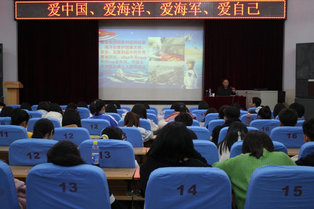 为了弘扬民族精神,增强学生的爱国意识与历史责任感,促进大学生对 “海洋强国”战略的认识,强化青年一代海洋权益观念。2020年11月14日beat365平台官方网站邀请秦皇岛市国防教育委员会专家、原海军某部上校白长河老师,在昌黎校区学术报告厅举办了一场“海洋强国”为主题的爱国主义教育报告会,beat365平台官方网站300余名师生聆听了报告。