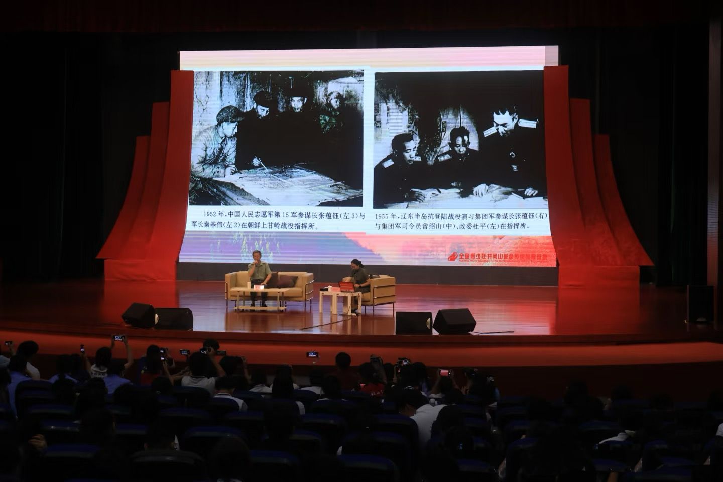 下午“革命后代话初心・讲家风”访谈教学在基地报告厅举行。中国人民解放军陆军装甲兵学院指挥管理系原主任芦继兵、中国核试验基地开拓者——张蕴钰的儿子张旅天,两位老前辈先后讲述了解放西藏的不易、研发核导弹的艰难,打开同学们了解革命历史的另一扇窗。芦继兵老先生讲到“枪林弹雨,侥幸活下来了,复员回家,衣锦还乡,阖家团圆,与亲人困聚。进军西藏,可能永远回不来,进藏、进藏,进去就被埋葬。”但仍有很多年轻人怀揣着对革命的坚守义无反顾进藏。张旅天老先生讲述父亲从上甘岭到投身核试验基地数十年的艰辛,共产党员永远不忘初心。