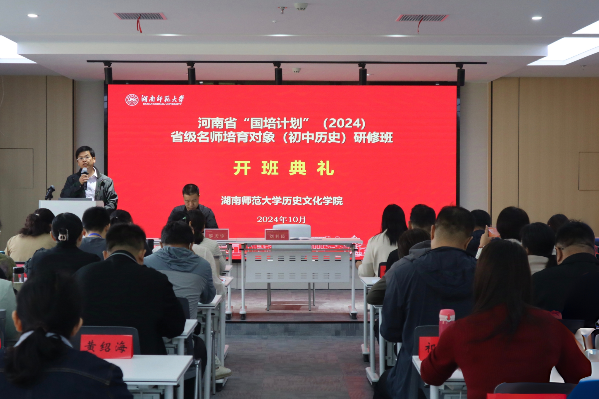 (通讯员匡艳芬唐静茹李青)10月9日上午,河南省“国培计划”(2024)省级名师培育对象(初中历史)研修班开班典礼于澳门永利集团网址APP科研楼305报告厅举行。澳门永利集团网址APP院长刘利民、副院长黎天宇出席,培训班全体成员参加,此次典礼由班主任凌爱群主持。